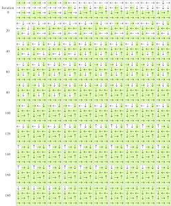 Working straight from the output of the solver, in about twenty lines of code, I output a grid showing candidate solution every other iteration (the green cells indicate cells where the action is optimal). Followed by an Export function, the graphic was ready to be included in my
